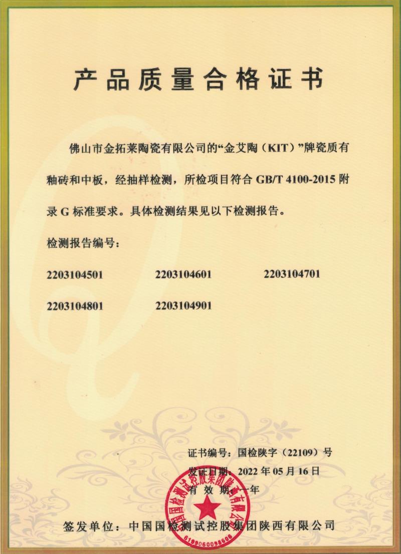 • 产品质量合格证书