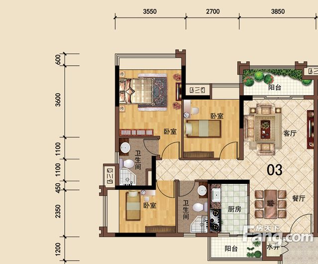 • 依云天汇B01户型 3室面积155.00平米