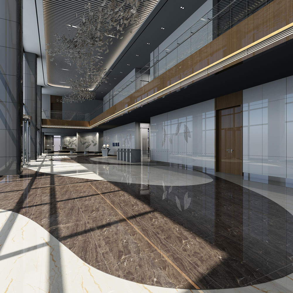 酒店大堂(KTA8301/KTB8110)气势宏伟、简洁雅致,充分体现亲近自然的精神。整体色彩及材质沉稳厚重,尽显安定、和谐之感。通过不同高度的尺度关系,丰富空间的层次感,艾釉石铺贴的地面由放至收,由动至静,让宾客跟着流动的线条慢慢远离城市喧嚣,进入宁静自然的“家”。