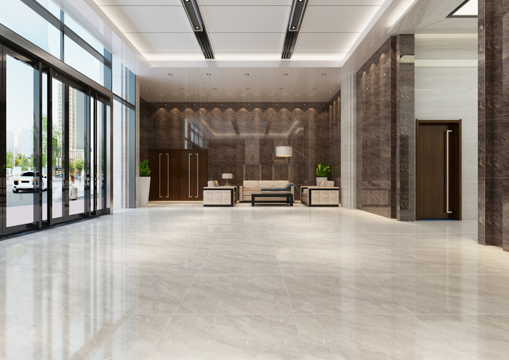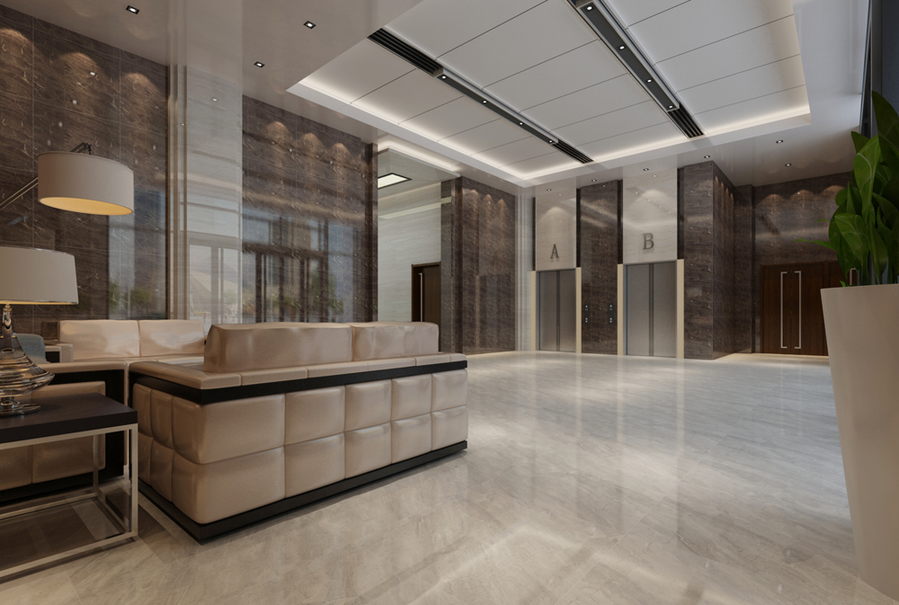 酒店休息区(KTA8301/KTB8110),同样以通体大理石KTA8301/KTB8110铺贴,一深一浅的搭配正好区分墙面和地面,但它们的纹理大致一样,又很好地营造空间的和谐统一。沙发选用与地面接近的颜色,线条简洁大气,在休息区没有流动的线条,设计师用意是想营造休息区的安静氛围。