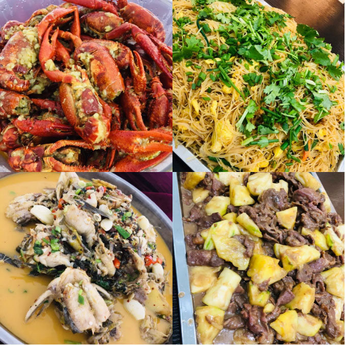 寿司船、麻辣小龙虾、时令水果、炒粉...