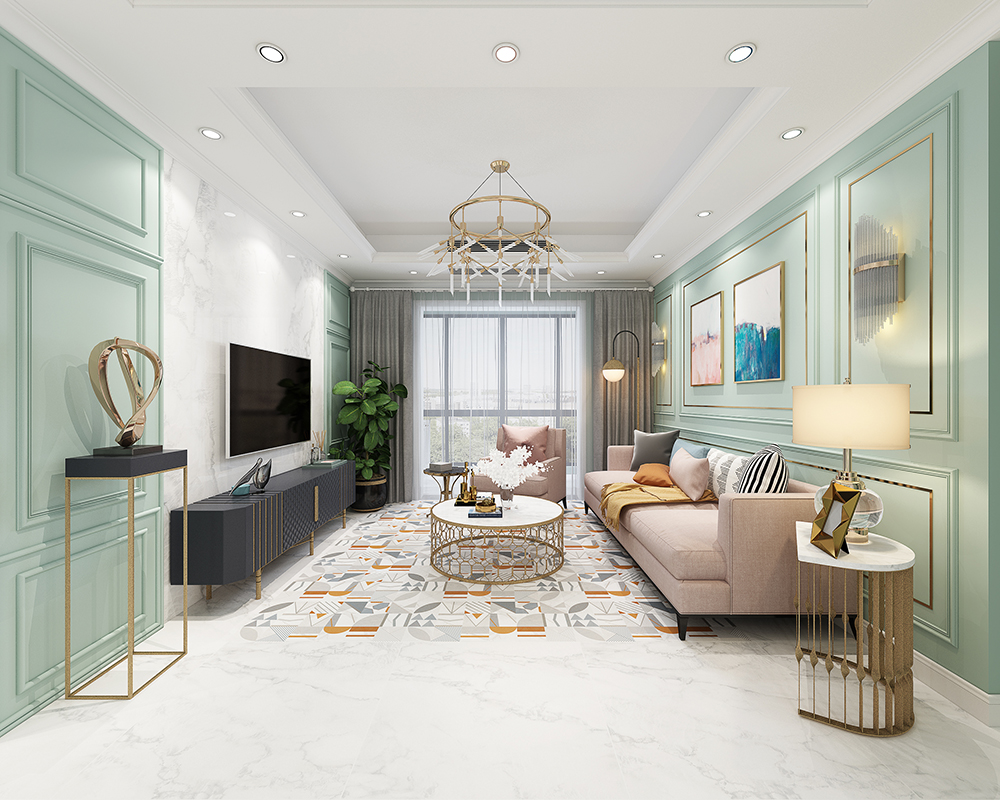 白色素净洁雅,浅灰色网纹无规则,让瓷砖接近天然大理石的纹理质感,山脉蜿蜒无边,带着部分结晶玉石团纹,更显自然之美。