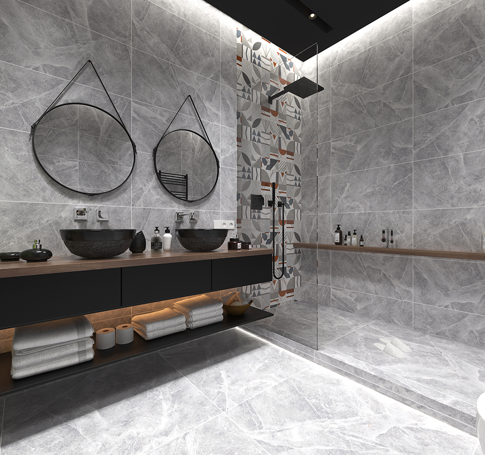 暖灰色时尚温馨,少量白色纹理错落有致深度还原天然石材纹理,勾勒出有格调的空间感。