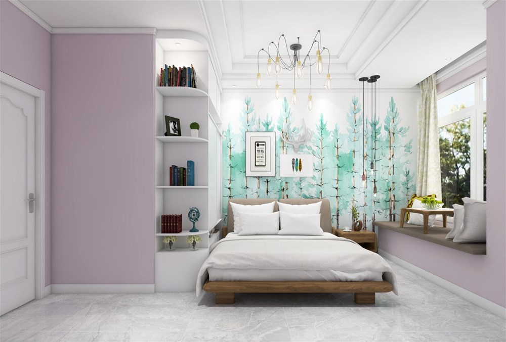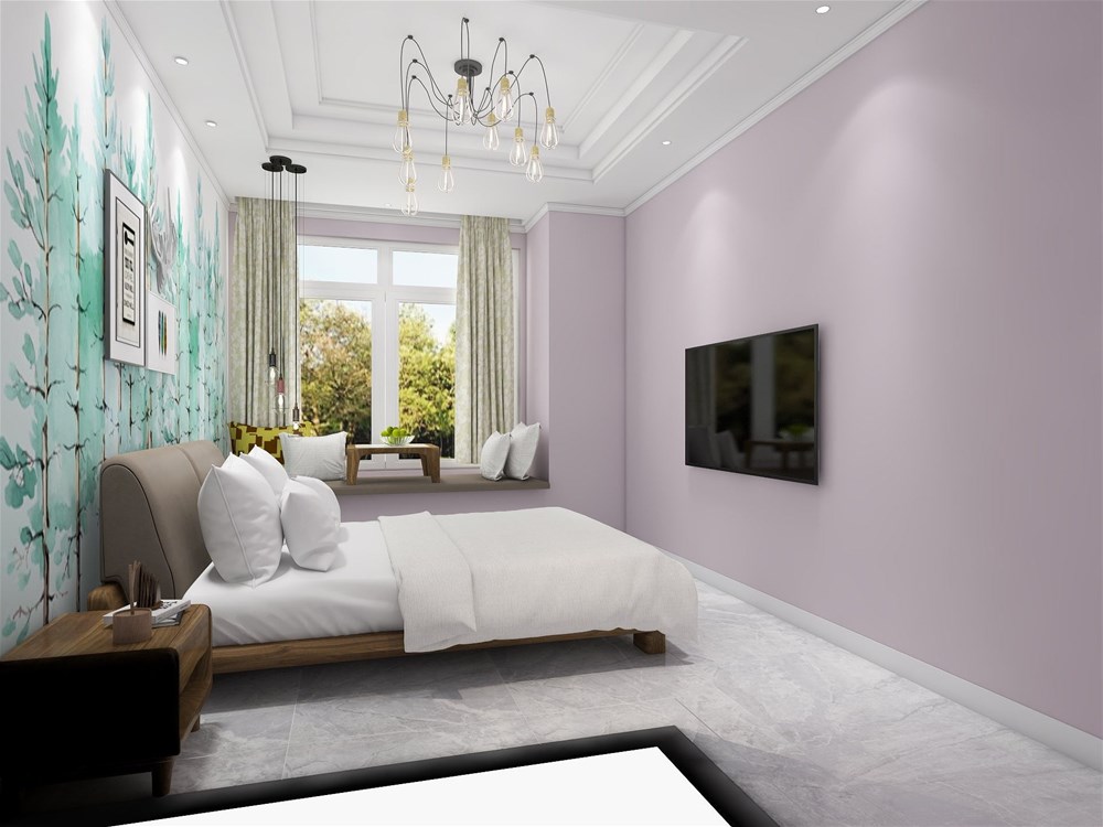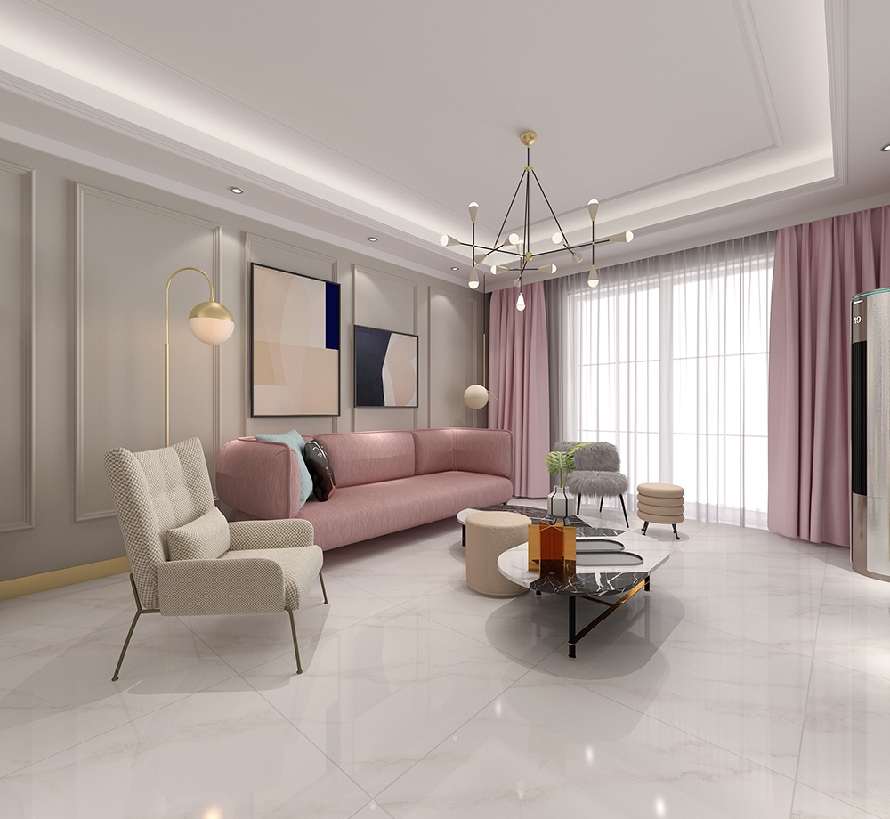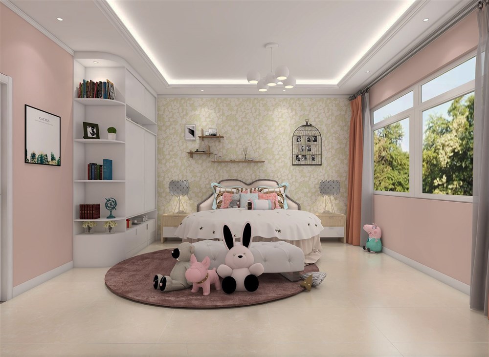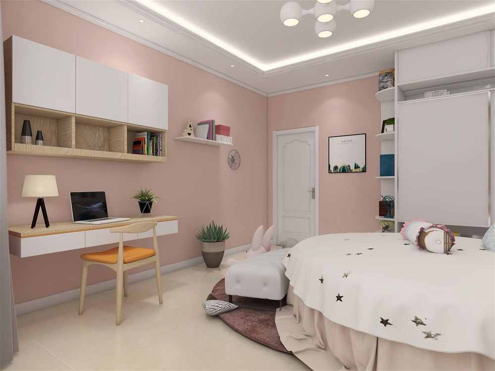 米黄的地砖与粉色碰撞出温馨、愉快的气氛