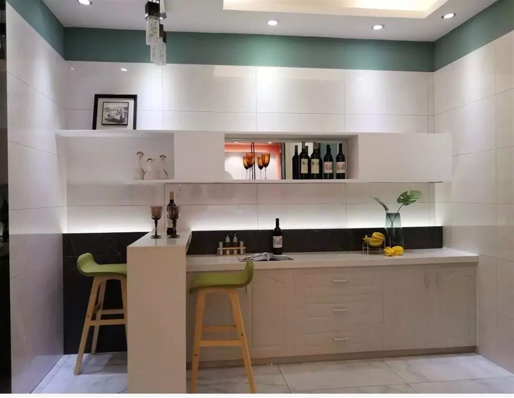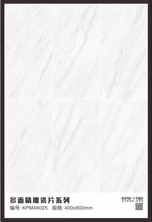 KPM48025白色飘逸的流纹作为卫生间的墙面非常干净素洁,400*800的规格显得大气美观,相对大砖切割上墙更有性价比,高光亮面让你的卫生间更显亮堂大方。洗手台用青青草手机视频KYP918001切割当台面,900*1800规格以及大理石纹理更显档次。
