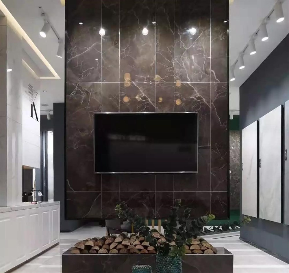 暖灰色通体大理石KA9M009打造前台背景墙非常有味道,不愧是多年的畅销榜长青树。