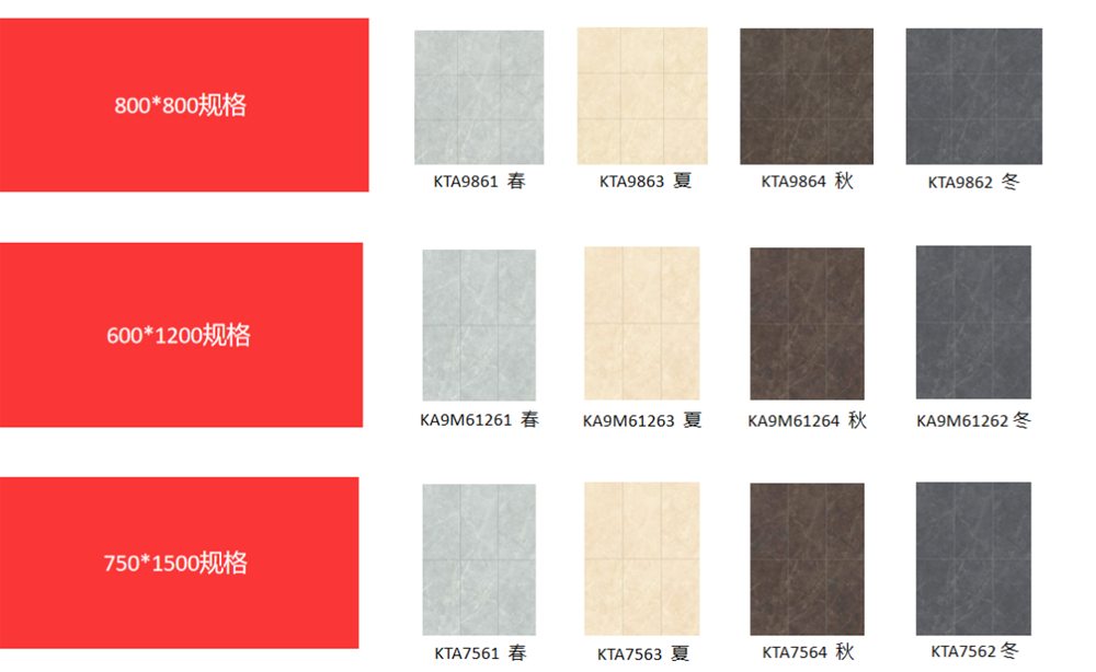 三个经典规格 横跨800*800,600*1200,750*1500三个规格,上墙下地无所不能,满足不同的家居场景