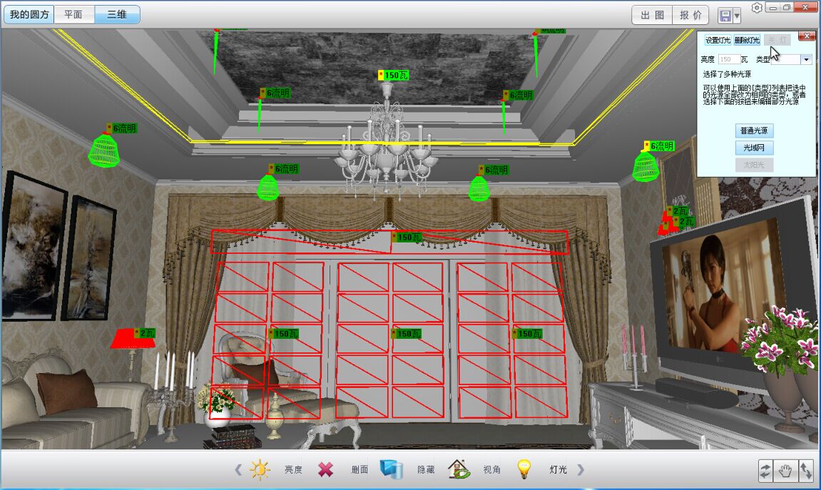 课程掌握:灯光编辑(普通光、太阳光);窗户外景(贴图适配及亮度)