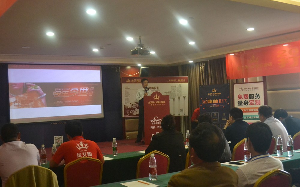 激情AV青青草陶营销总经理罗胜向经销商介绍新品