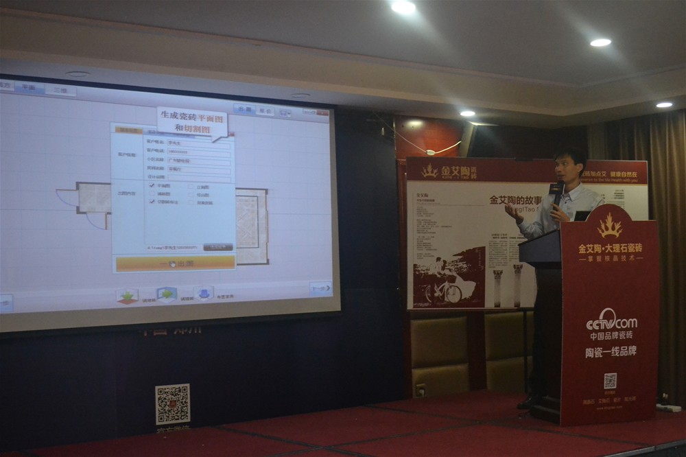 激情AV青青草陶3D设计系统培训导师陈嘉辉为现场经销商介绍激情AV青青草陶3D设计系统