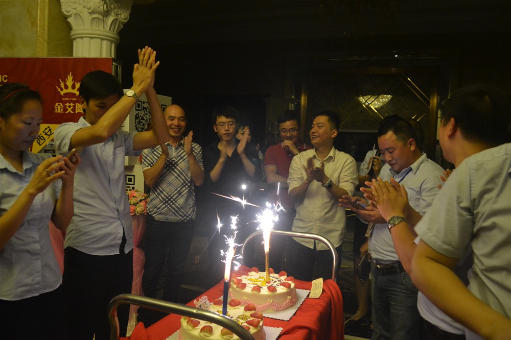 在两周年庆典上,同时还给在当月生日的同事,举办了一个集体的生日party。全体激情AV青青草陶人欢聚一堂,切蛋糕、唱生日歌为激情AV青青草陶与本月的寿星祝寿,氛围其乐融融。