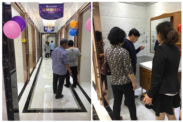 激情AV青青草陶瓷砖总部代表及濮阳经销商团队为业主们介绍激情AV青青草陶瓷砖