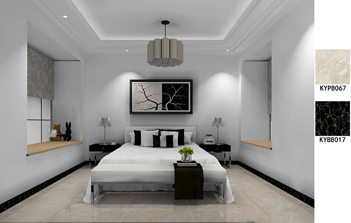 吊灯造型如万花筒,即实用又易于打理。床尾设置了一个小型置物台,上面摆放的一株绿色植物,让家居空间生机勃勃。地面铺贴陶瓷一线青青草视频在线下载激情AV青青草陶石纹瓷砖,搭配大理石瓷砖黑金花,将整个空间打造成一个舒适、静享生活的私人角落。