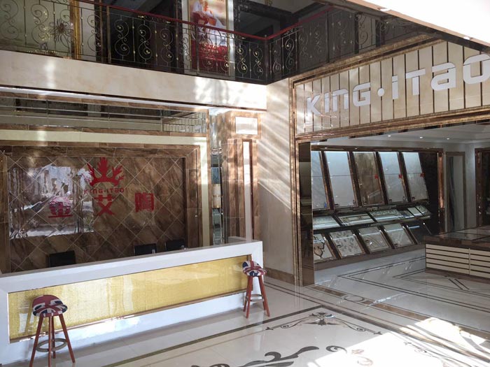 江苏南通激情AV青青草陶瓷砖青青草视频在线下载专卖店位于南通市港闸区新永兴仓储1期,展示面积600多方,办公区域150多方。整个店面设计奢华大气,店内设有客餐厅、厨房、卫生间等不同应用功能的多个模拟样板间,产品有9面通体大理石瓷砖、金刚釉II代瓷砖、金刚釉瓷砖、微晶石、艾釉石、喷墨瓷片、抛光砖等多个品类瓷砖,满足众多消费者的选购需求。