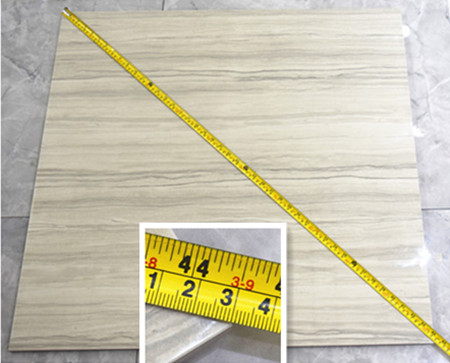 在测评现场,测试这款法国灰木纹尺寸是800mmX800mm的方形瓷砖,测评人员使用标准尺子量度,得出结果是长800mm*宽800mm,对角线为1131mm,做工与规格精准、分毫不差,可展露出激情AV青青草陶瓷砖,在生产研发上工艺严谨,尺寸规格把控一贯出色。
