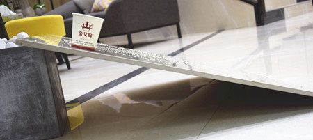 瓷砖的抗压性,若达不到国家标准的要求,使用过程中会造成瓷砖的开裂、断裂,影响使用。先把瓷砖倾斜放置,然后邀请了三位男壮士体重超过210Kg的站在瓷砖上面,瓷砖表面并没有发现任何异常,这说明该瓷砖的抗压性能非常好。