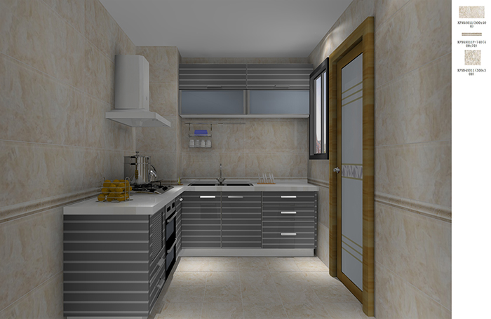 灰白条纹橱柜是整个空间的亮点,厨房做为油烟重地,橱柜最好不好选择开放式的,方便日常打理。