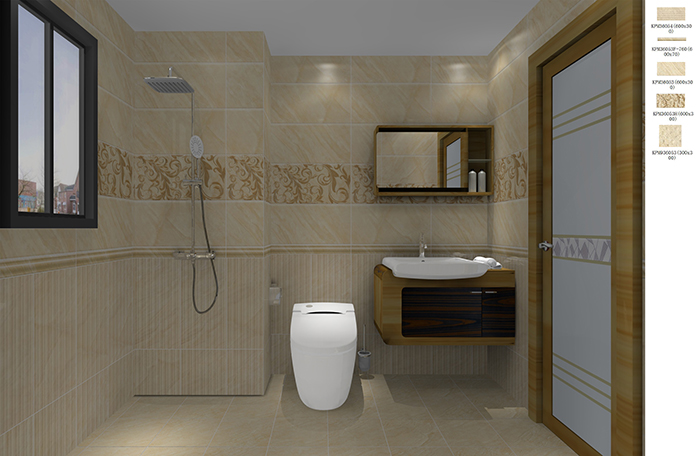 浴室的瓷砖铺贴讲究搭配的整体性,下墙砖在与上墙色调保持一致的情况下,更是给人一种3D立体柱状的感觉,仔细看看有木有这种感觉?