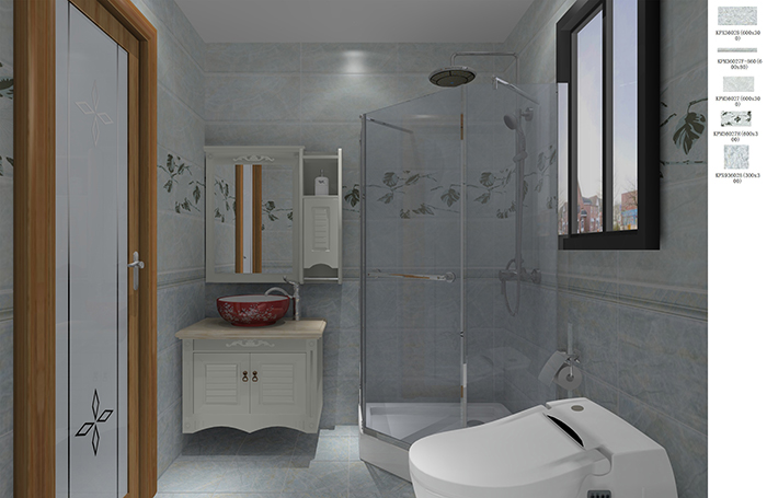 花片穿透在淋浴房上,映射在镜子里,美感不言而喻。