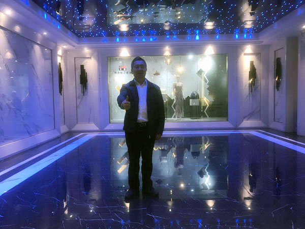 【佛山市艾陶制釉有限公司总经理刘鸿兴在博德全球营销中心内留影】