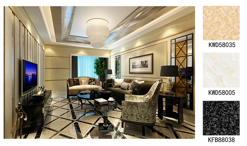 水刀拼花技术可谓是近两年的大热,很多人喜欢把这样的瓷砖应用在客厅正中的位置,是因为由它的整体效果而展示出的大气、典雅、奢华,统统不言而喻。