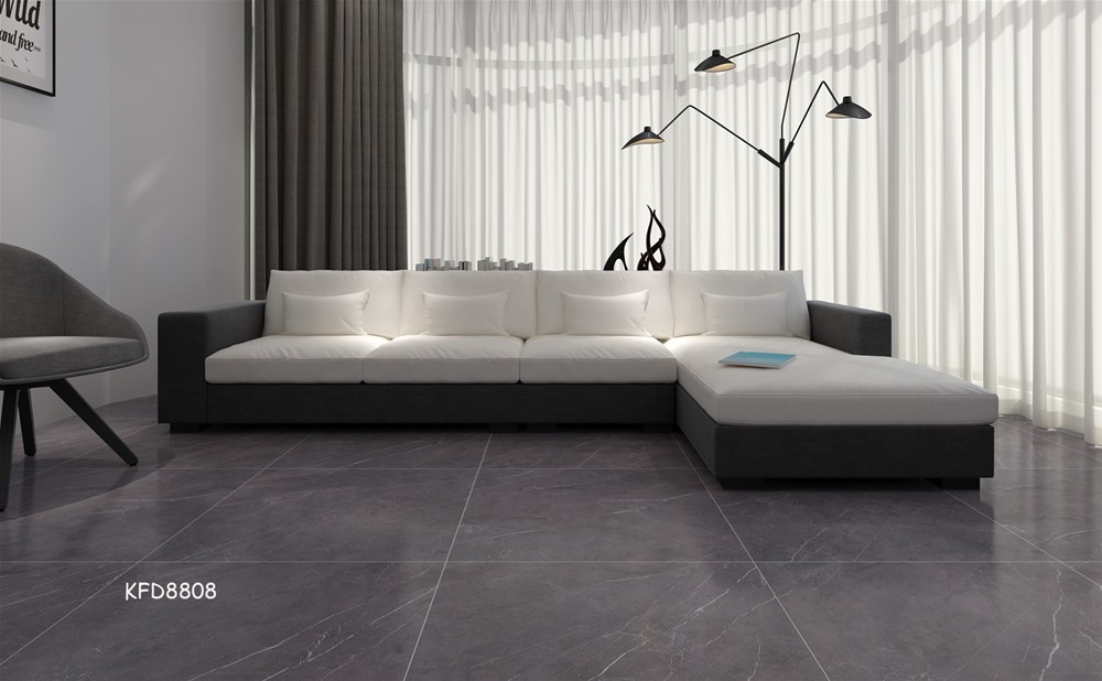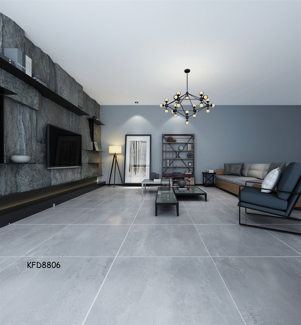 灰色调15º缎光釉铺贴的客厅,它既不浓妆艳抹,也不轻描淡写,紧抓80、90后消费者的审美:简单、随意、个性,在软装上,更是注重细节的表现,灰色无论与黑白搭配,还是被黄色如此明亮的颜色点缀,灰色肌理的变化都是多姿多彩,给空间无限的美感。