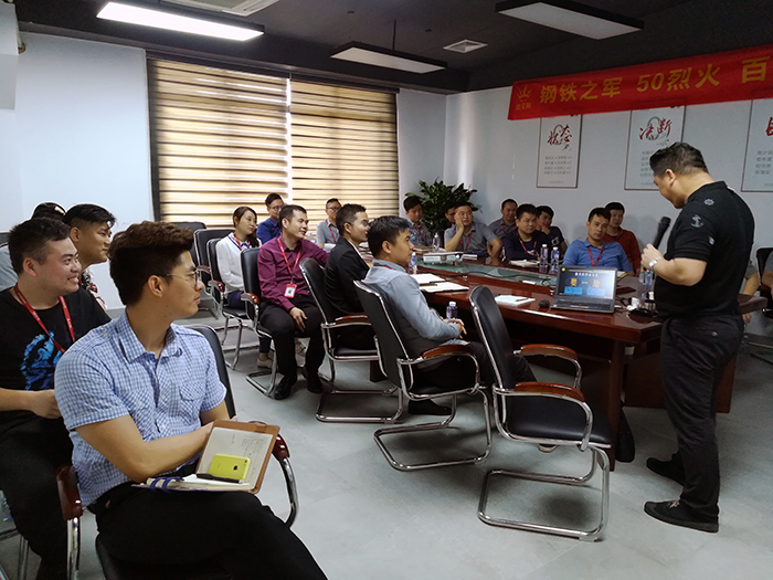 培训课程分为《老客户服务技巧》、《经销商售后服务处理技巧》两部分内容。培训导师曾先生对本次培训进行了精心的准备,包括销售相关专业知识讲解、陶企行业现状分析以及销售中常见的问题解答等等,为销售人员带来了丰富的思想大餐。