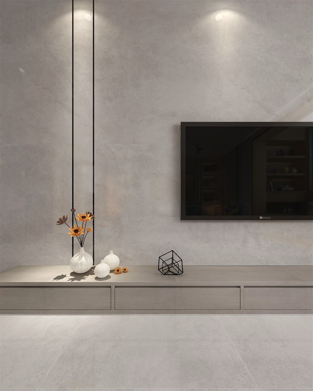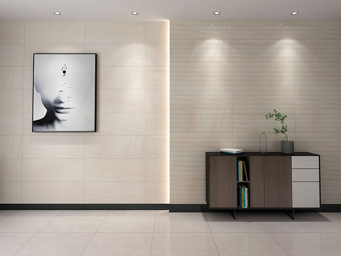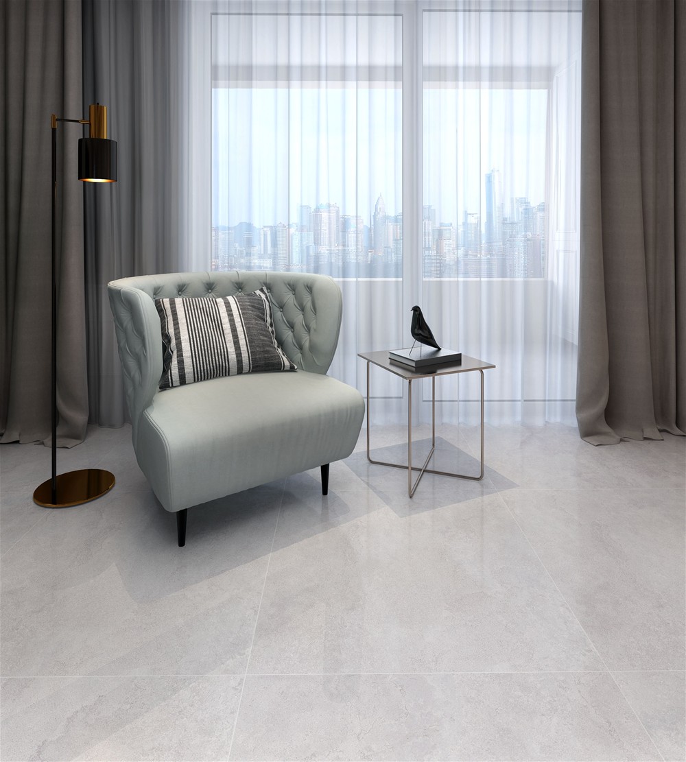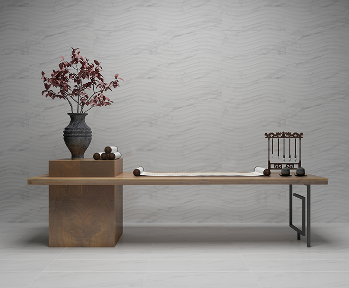 白色的表面素雅而宁静,灰色线条横跨其中,自然而纯粹,色泽素净大方,光感柔和自然,似乎是将一层薄薄的丝绸印刻在瓷砖的表面,缕缕轻丝缠绕,触感舒适细腻,带来如绸缎般丝滑体验。