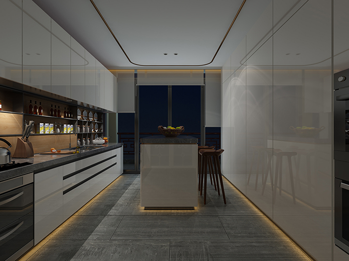 橱柜部分采用了不同色调和材质的混合搭配,为物品分类提供了足够的空间,全部收纳都可以对号入座,拿取时一目了然。