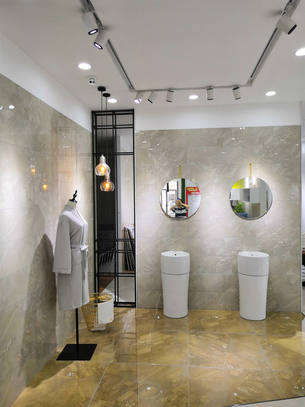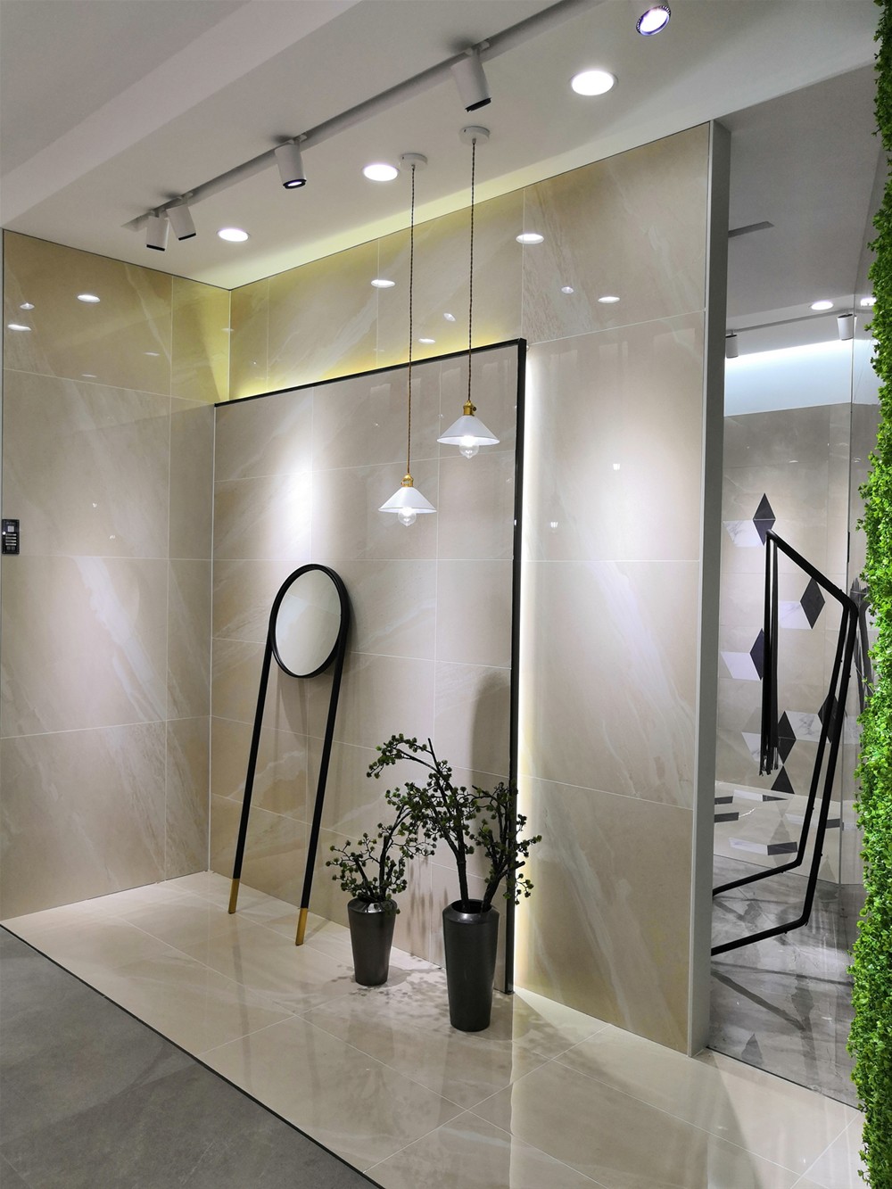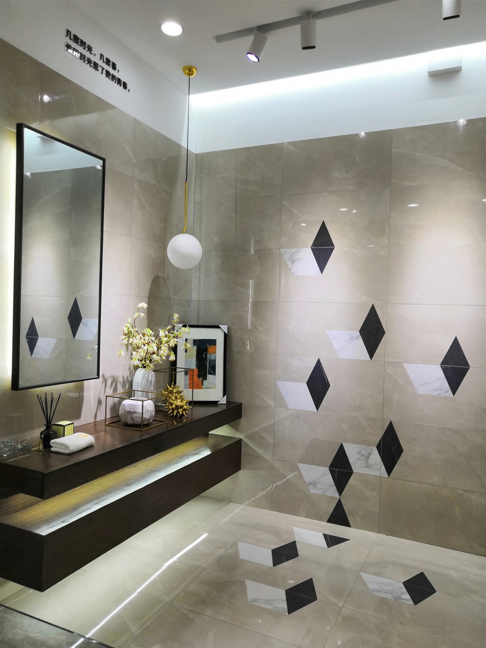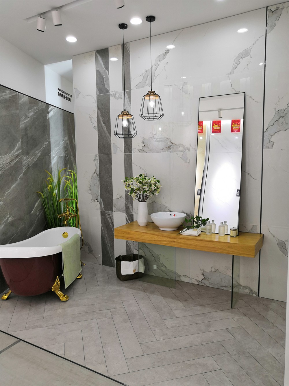 一类是时尚前沿的15度缎光釉,一类是现在热销的通体大理石 。