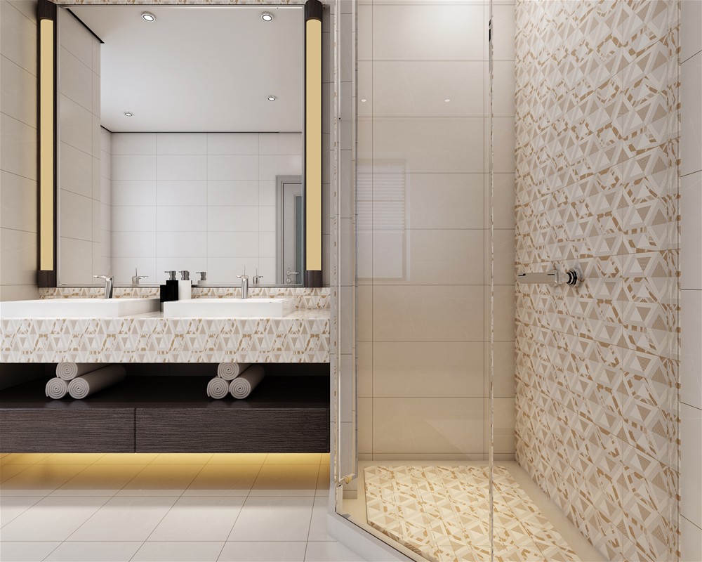 现代流行高级灰瓷片,纹理斑驳,随性自然,富有年代感,给人简约、个性之感,搭配工业风的花片,乱中有序,素雅中带有些张扬的个性。适用于卫生间、厨房墙面或作吧台、前台铺贴使用,使用风格:现代简约风格、工业风、loft风格等。